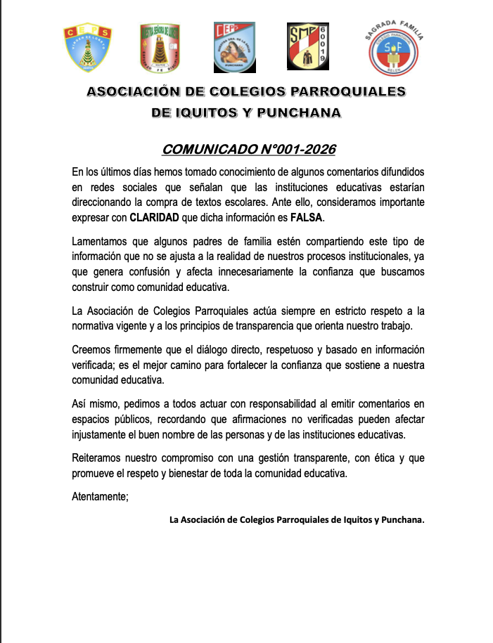 Estimados padres de familia y/o apoderado, les saludo afectuosamente deseando se encuentren bendecidos por nuestro padre celestial.