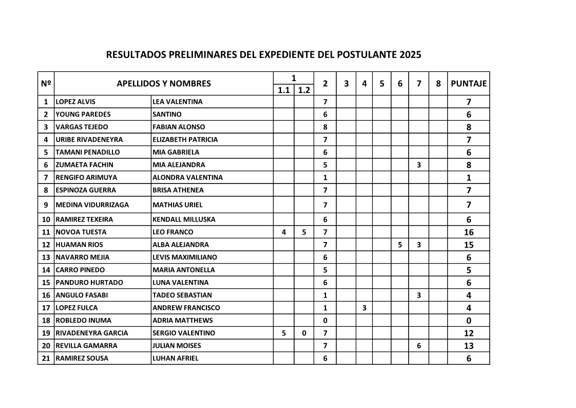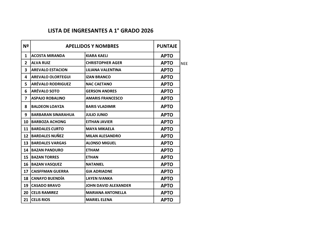 LISTA DE INGRESANTES AL PRIMER GRADO 2025