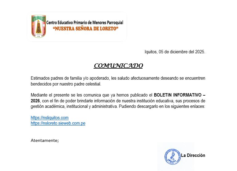Estimados padres de familia y/o apoderado, les saludo afectuosamente deseando se encuentren bendecidos por nuestro padre celestial.